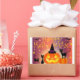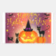 A hilarious design for Halloween; smiley pumpkin, black cats, and flying bats with fluorescent stars behind.
