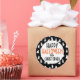 Happy Halloween Ghost Pattern Kids Personalised Stickers. Attach to treats or party favours for Halloween parties. Personalise stickers with name and Happy Halloween or edit text to change. Black background with white ghosts pattern. White circle in centre with text inside. Check out our other fun and spooky kids Halloween party supplies.