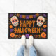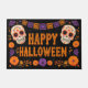 Happy Halloween Gold Sugar Skull with Marigolds Doormat