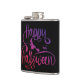 Well made flask, a little better than I had expected. Flask came in clear plastic box which gave it a nice presentation when I took it out of the zazzle packaging. Image is not printed on flask but on sticker. Don't know how this will hold up I haven't used it yet. This would make a Great gift! I plan to purchase more for friends! Cheers. I thought a little brighter than computer. Very crisp, writing wasn't
