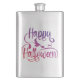Happy Halloween gradient flying witch cat Hip Flask