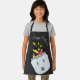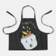 A Halloween apron with a ghost pail that’s filled with candy. This fun apron includes the words “Happy Halloween” that can be customised. The apron’s colour scheme is grey and white.