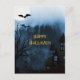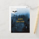 A delightful and fun way to send Halloween wishes to your loved ones. This post card has a haunted house scene on a moon lit night, complete with tree skeleton, spiders and bats.