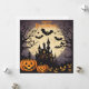 Happy Halloween - Haunted House, Pumpkins and Bats Holiday Card