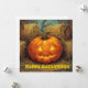 An illustration of a carved pumpkin with a scary face amongst corn stalks and hay bales. #generativecontent