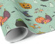 Happy Halloween II -Combining Halloween icons -witch’s cauldron, witch’s hat, ghosts, bats and pumpkins into a seamless, background pattern on green.