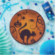 Happy Halloween circle badge with jack-o'-lantern black cat and bats typography