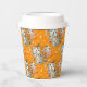 Halloween mugs with adorable pumpkin, mummy, and spider web designs on orange background