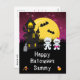 This fun and spooky Halloween card can be personalised with a name or title, such as daughter, granddaughter, niece, friend etc. It features cute mummies beside a crooked haunted house. In the background is a full moon with bats and a pink night sky with stars. The text combines decorative and serif fonts for a stylish and modern look. This is perfect for Halloween.