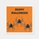 Orange napkins with image of spiders and the words, "Happy Halloween"