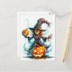 This unique Halloween postcard features a creative illustration of a spooky witch holding a pumpkin. Please feel free to customise all the available options as you wish.