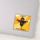 These awesome Halloween stickers feature a jack o' lantern scarecrow in black silhouette, on a striking, geometric background in shades of orange.