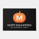 Happy Halloween Orange Pumpkin Custom Initial Doormat