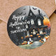 Fun Cute Spooky Haunted House Ghost Bats Orange Black Happy Halloween Party Classic Round Sticker.