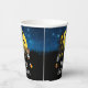 This fun and spooky paper cup features cute werewolves beside a crooked haunted house. In the background is a full moon with bats and a blue night sky with stars. This is perfect for Halloween.