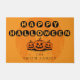 This Happy Halloween pumpkin family design, featuring smiling jack-o’-lanterns, a haunted backdrop, and a custom family name. Perfect personalised Halloween decoration to welcome guests, add festive charm to your home and bring the spirit of Halloween night to life.
