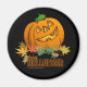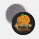 Happy Halloween Pumpkin magnet feature our original digital art of a cute jack-o-lantern sitting in a pile of colourful fall leaves on a customisable black background. With the words beneath, Happy Halloween, these fun pumpkin gifts will be a big hit this fall for anyone who loves Halloween, fall weather, pumpkins, jack-o-lanterns, and trick or treating. Drink hot cocoa, hot apple cider, or pumpkin juice from a fun jack-o-lantern mug, trick or treat with a fun pumpkin tote bag and much more. Have a spooky Halloween!