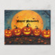 Happy Halloween Pumpkins on Full Moon Holiday Postcard