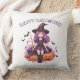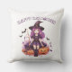 Happy Halloween Purple Witch Pumpkins & Bats Cushion