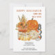 Say Happy Halloween from your new home and let everyone know your new address at the same time. Rustic farmhouse watercolor design in gender neutral, rich autumn colours of burnt orange, golden yellow and grey. The illustration features an orange pumpkin with sunflowers, jack o lantern and white pumpkins on a farmhouse wooden crate, decorated with fall leaves and BOO porch sign. The moving announcement is titled "Happy halloween from our new home" and you can personalise the remaining wording.