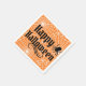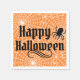 These scary cute Halloween paper napkins feature Happy Halloween in decorative letters with a black spider and a pattern of white spider webs with an orange background colour (can be customised).