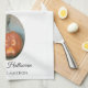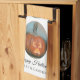 This easily customised tea towel features artwork in soft pastel hues depicting a carved Halloween pumpkin with a fun, cross-eyed Jack o’ lantern face.