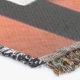 A quality printed throw has its advantages. This is a much finer weave throw than its loopier cousins, and though lighter, it is worth the investment for custom room accessorizing. The back is much prettier than the typical brown, and the fringe on the long sides very vivid, the selvage nicely done. Before photographing, I washed the throw in cold water, delicate, with a thicker woven throw the same size. On tumble dry low, this throw was dry in half the time as the other. This is a very practical quality if you use throws for furniture covers or to wrap up in frequently. The sleekness of the fabric makes it a great layer for accenting or protecting without the feeling of sitting on too much stuff. Perfect for napping or when you feel a light chill coming on. The color printing is beautiful and on this fabric, matched the design and color of my Photoshop image. This is an advantage for blending room fabrics and colors. The fringe on the short sides prints the colors from the design image and therefore varies from the side fringe. I streaked a white fractal line through the plaid pattern to give the illusion of weaving. This printed as crisp as an illusory thread, and put some white in the short side fringe, showing another advantage of print vs loomed- for artistic purposes, line lines, detail, and color integrity can be planned and preserved. My loomed throws have color limitations and more of a needlepoint texture. Print throws reproduce an exact image. The throw felt a little stiff straight out of the package, but this went away in the first delicate wash. Of course I searched the wash water for ink or bleeding and there was none.