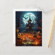 Happy Halloween Skeleton Skull Haunted House Postcard
