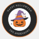 Happy Halloween Spooky Pumpkin Custom Text Classic Round Sticker