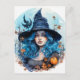 This unique Halloween postcard features an illustration of a witch. Please feel free to customise all the available options as you wish.