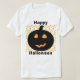 A festive, smiling Happy Halloween pumpkin sits atop a custom digitally designed pattern of streaming abstract pinwheel shapes.