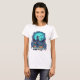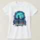 The T-shirt features a haunting Halloween scene set against a dark, starry night. A luminous full moon casts an eerie glow over a desolate cemetery. In the foreground, a creepy scarecrow stands with its back to us, gazing ominously at the moon, creating a spine-chilling atmosphere perfect for the season.