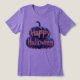 A spooky and festive t-shirt design featuring a glowing pumpkin with the words "Happy Halloween" written on it. The dark background and vibrant colours create a captivating and Halloween-themed look.