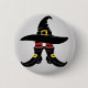 Happy Halloween Scary witch Button. It is Orange and black Happy Halloween with a screeching black cat can be customised to add names, text, or sayings. Click "customise it" to add yours. It is great for fun Halloween gifts and treats!