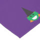 Dress up your table with this fun Halloween-themed runner! A cute cartoon-style green witch face has a pointy black hat, pointy ears, orange hair, and a happy smiling expression, on both ends of a purple runner. Great for Halloween parties, or all October long!