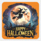 Happy Halloween - Witch on flying Broom Square Sticker