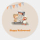 Happy Halloween with bear, duck and calculator kid Classic Round Sticker