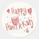 This fanciful Happy Hannukah design features a menorah in place of the “U” in the word, Hannukah. This spelling has become the most widely acceptable spelling in English so even if you usually spell it Hanuka or Chanukah, you cannot go wrong with this one. The red colour makes it cheery and the webbed background makes it light.