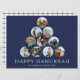 Can't pick just one or two of your favourite family photos? These large 8.75" x 6.5" flat Hanukkah greeting cards feature placeholders for 10 of your favourite photos, family name and year. The photos are all round in shape with navy blue borders. The greeting, Happy Hanukkah is in white.