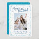 “Happy Hanukkah.” It's that time to touch base with your family and friends to celebrate Hanukkah and usher in the festival of lights. Fun, whimsical navy blue handwritten script typography, Star of David and turquoise teal blue hand drawn Hanukkah dreidels and sparkles, along with the photo of your choice, overlay a white background. 4 additional personal photos, your custom message, and a white hand drawn Star of David and sparkles on turquoise blue adorn the back. Feel the warmth and joy of the holiday season when you send out this fun, playful, modern, personalized 5 photo Hanukkah greeting card. Make this Hanukkah one to remember!