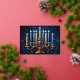 Happy Hanukkah Abstract Drawing Menorah Gold Blue