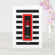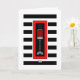 This unique red, black and white hanukkiah on bold black and white stripes declares Happy Hanukkah blessings! Interior card bordered and coordinated with also a colourful spinning dreidel for your writing pleasure. ~ karyn