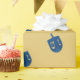 Happy Hanukkah Blue Dreidels on Elegant Golden Wrapping Paper