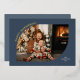 Wish your loved ones a very happy Hanukkah with this fun single photo card. It features a blue leaf-shaped frame with the words Happy Hanukkah in foil along one of the curved corners and space for your name in the year next to the other curved corner. The back has space for another photo.