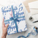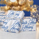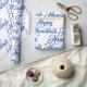 Happy Hanukkah blue and white Jewish Holiday elegant script gift Wrapping Paper.