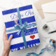 Custom Text Dear Raziel, Happy Hanukkah, Red Heart, The Williams Family, you can change or delete all text, Hanukkah Gift Wrapping Paper Elegant Blue and White Stripes Pattern