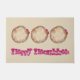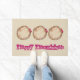 Welcome mat features an original marker illustration of a jelly doughnut, with HAPPY HANUKKAH in a fun font. Perfect for Hanukkah holiday decorating!