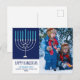 Happy Hanukkah Family Photo Cute Blue Menorah Postcard