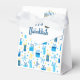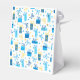 An Adorable Happy Hanukkah Party Favour Gift Box For Celebrations Design In A Colourful Blue and Yellow Gift Pattern And A Lite Menorah