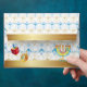 Envelope Happy Hanukkah Festival of Lights. Beautiful Jewish Holiday Greeting Card. Jewish Holiday Hanukkah Bokeh lights background with traditional Chanukah symbols - wooden dreidels (spinning top), doughnuts, menorah, candles, star of David and glowing lights wallpaper pattern. Hanukkah Festival Decoration. Jerusalem, Israel. Invitations & Stationery, Greeting Cards, Mailing Accessories, Envelopes Holiday and Seasonal 75th Anniversary